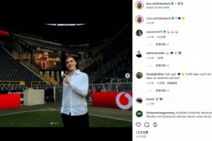施洛特贝克晒出自己在多特蒙德主场手指续约海报的照片,并配文:“!!!🖤💛”