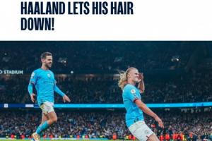 最终,曼城4-1大胜,德布劳内2射1传,哈兰德最后时刻披头散发打入一球,曼城也以“哈兰德放下头发”为这一瞬间的标题。